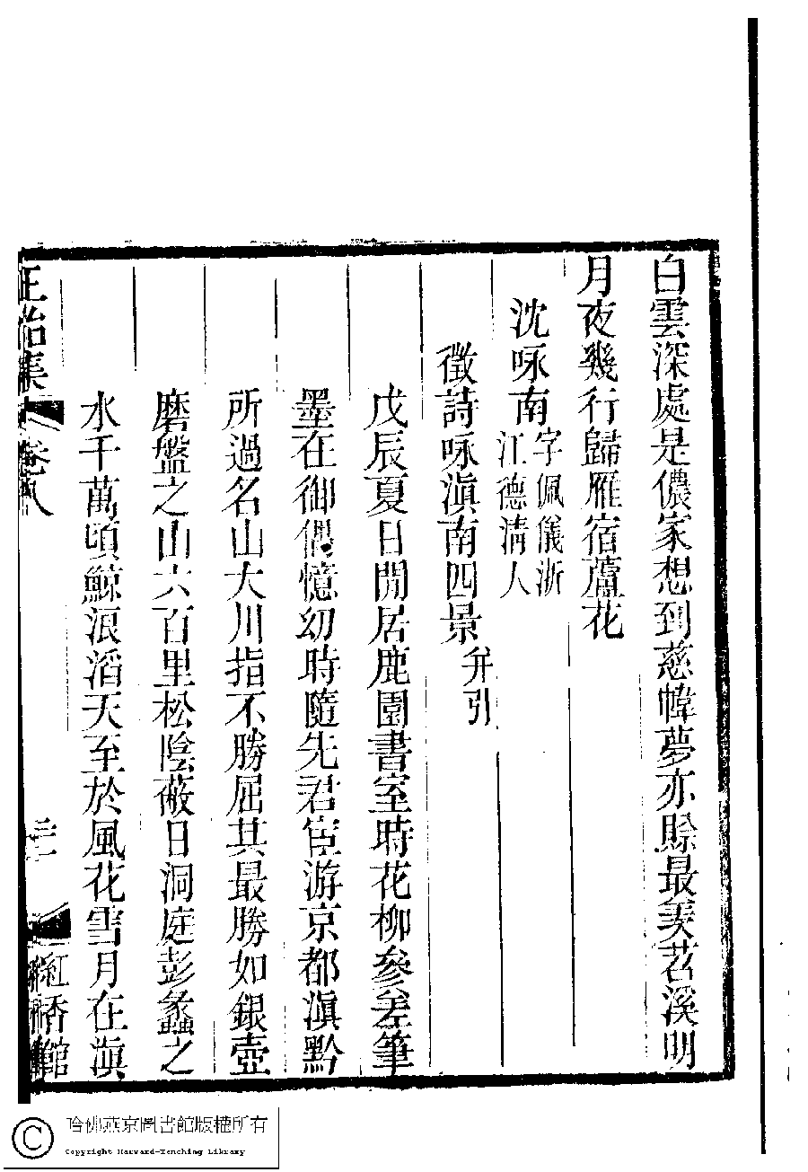 | 原書: 國朝閨秀正始集﹕二十卷﹐附錄﹕一卷﹐補遺﹕一卷﹐又附題詞﹕一卷(清惲珠輯) |