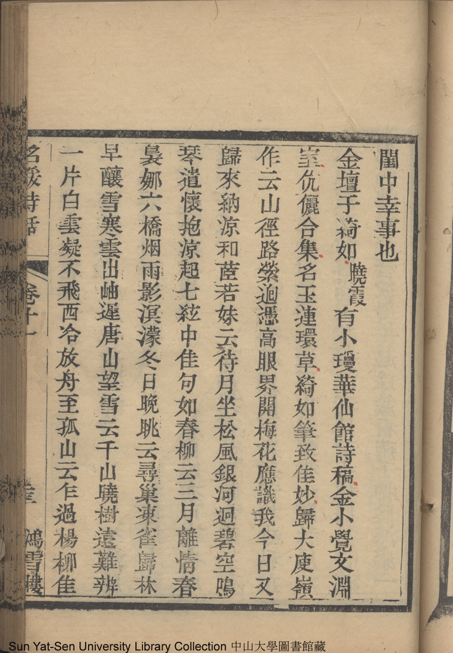 | (PRINT FRIENDLY VERSION) 名媛詩話十二卷續集三卷: 十五卷(清沈善寶撰)。清光緒五年(1879)鴻雪樓刻巾箱本 ![]() 頁碼 : 卷十一23b | 点 击 放 大 | 名媛詩話十二卷續集三卷: 十五卷(清沈善寶撰)。清光緒五年(1879)鴻雪樓刻巾箱本![]() 頁碼 : 卷十一23a | 点 击 放 大 | 返回 |