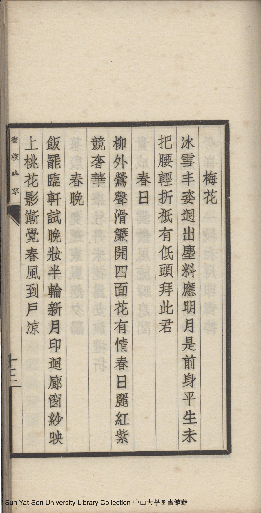 | (PRINT FRIENDLY VERSION) 畫荻吟草:一卷(清馬雅文撰)。民國二十五年(1936)廣州鉛印本 ![]() 頁碼 : 吟草13a | 点 击 放 大 | 返回 |