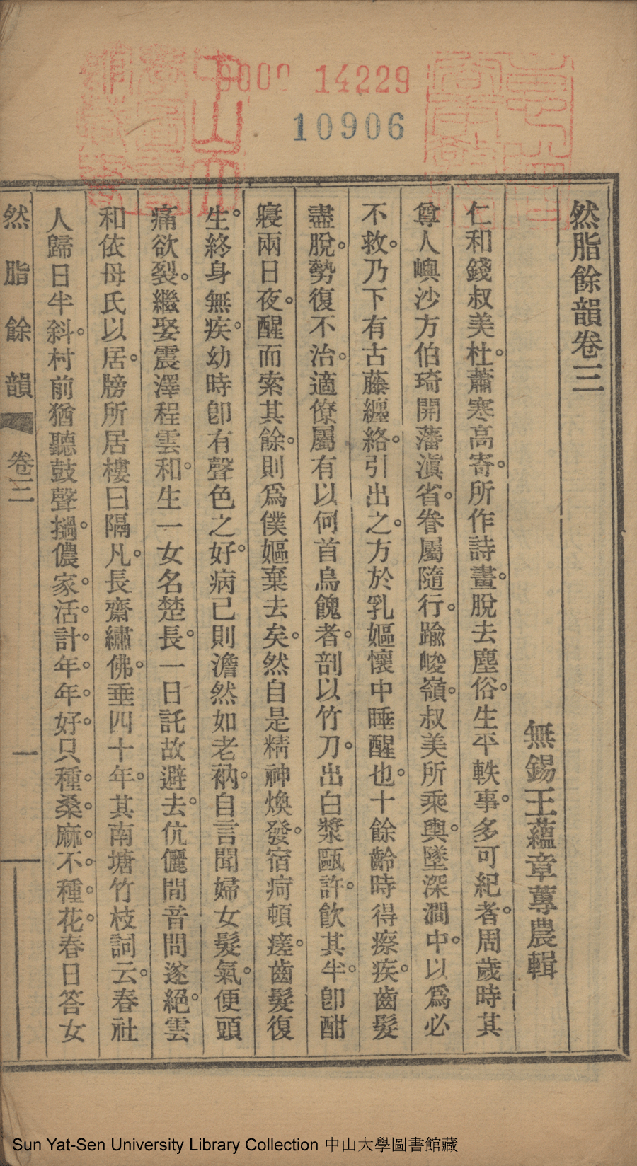 然脂餘韻: 六卷(清王蘊章撰)。民國九年(1920)上海商務印書館鉛印本