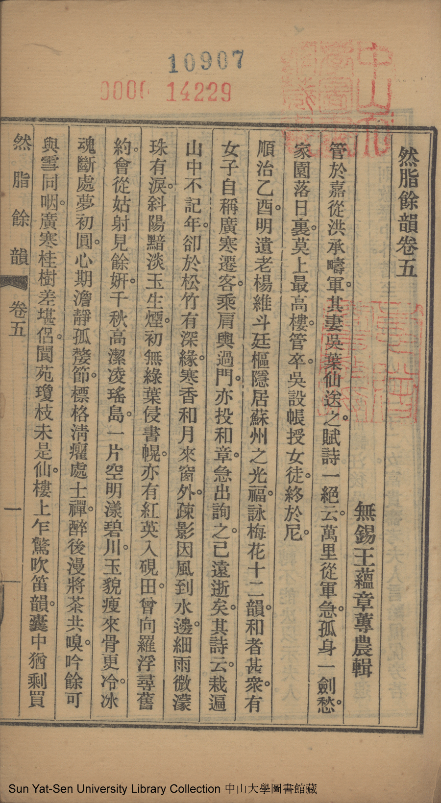 然脂餘韻: 六卷(清王蘊章撰)。民國九年(1920)上海商務印書館鉛印本
