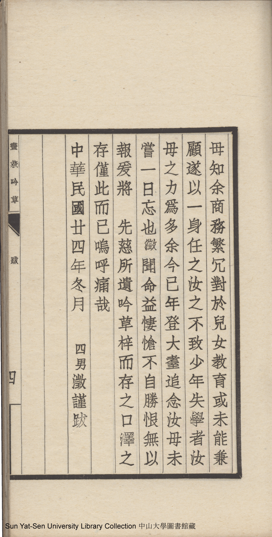 | (PRINT FRIENDLY VERSION) 畫荻吟草:一卷(清馬雅文撰)。民國二十五年(1936)廣州鉛印本 ![]() 頁碼 : 跋4b | 点 击 放 大 | 畫荻吟草:一卷(清馬雅文撰)。民國二十五年(1936)廣州鉛印本![]() 頁碼 : 跋4a | 点 击 放 大 | 畫荻吟草:一卷(清馬雅文撰)。民國二十五年(1936)廣州鉛印本![]() 頁碼 : 跋3b | 点 击 放 大 | 畫荻吟草:一卷(清馬雅文撰)。民國二十五年(1936)廣州鉛印本![]() 頁碼 : 跋3a | 点 击 放 大 | 返回 |
