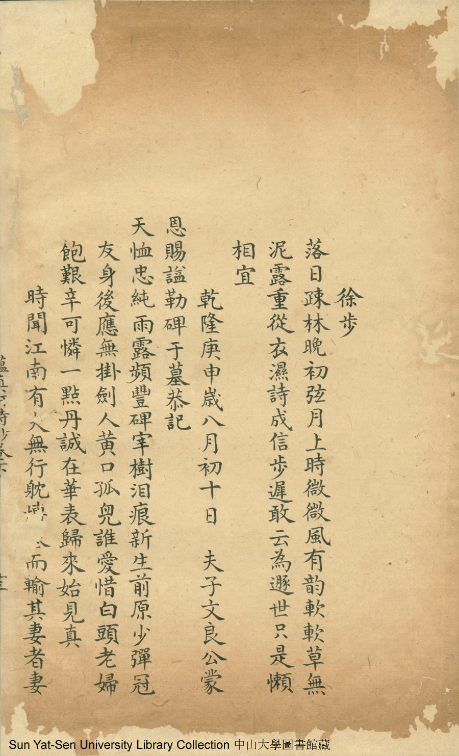 | (PRINT FRIENDLY VERSION) 蘊真軒詩鈔:二卷(清蔡琬撰)。乾隆四十四年己亥(1799)寫刻本 ![]() 頁碼 : 卷下13b | 点 击 放 大 | 蘊真軒詩鈔:二卷(清蔡琬撰)。乾隆四十四年己亥(1799)寫刻本![]() 頁碼 : 卷下13a | 点 击 放 大 | 返回 |