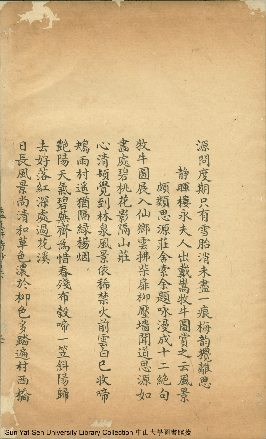 | (PRINT FRIENDLY VERSION) 蘊真軒詩鈔:二卷(清蔡琬撰)。乾隆四十四年己亥(1799)寫刻本 ![]() 頁碼 : 卷下20a | 点 击 放 大 | 蘊真軒詩鈔:二卷(清蔡琬撰)。乾隆四十四年己亥(1799)寫刻本![]() 頁碼 : 卷下19b | 点 击 放 大 | 返回 |