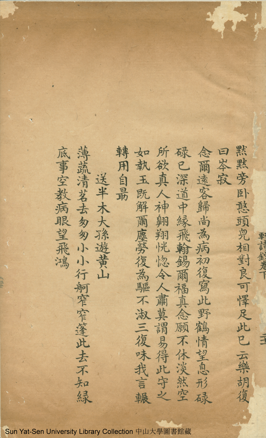 | (PRINT FRIENDLY VERSION) 蘊真軒詩鈔:二卷(清蔡琬撰)。乾隆四十四年己亥(1799)寫刻本 ![]() 頁碼 : 卷下21b | 点 击 放 大 | 蘊真軒詩鈔:二卷(清蔡琬撰)。乾隆四十四年己亥(1799)寫刻本![]() 頁碼 : 卷下21a | 点 击 放 大 | 返回 |