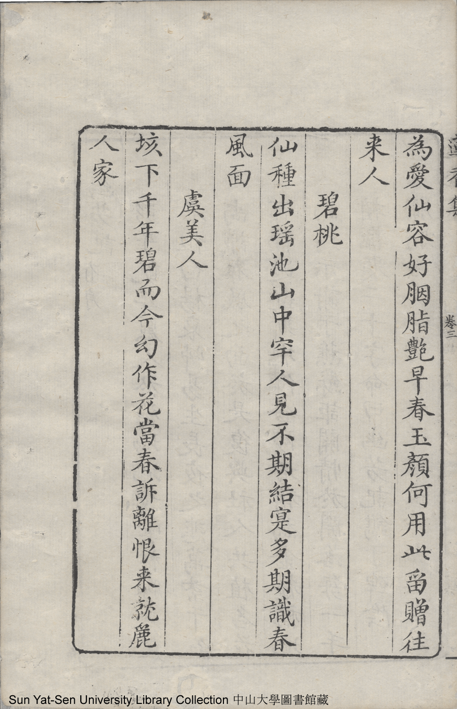 | (PRINT FRIENDLY VERSION) 蓮香集:五卷(明張喬撰)。清乾隆三十年(1765)順德梁釪重刻本 ![]() 頁碼 : 卷三25b | 点 击 放 大 | 返回 |