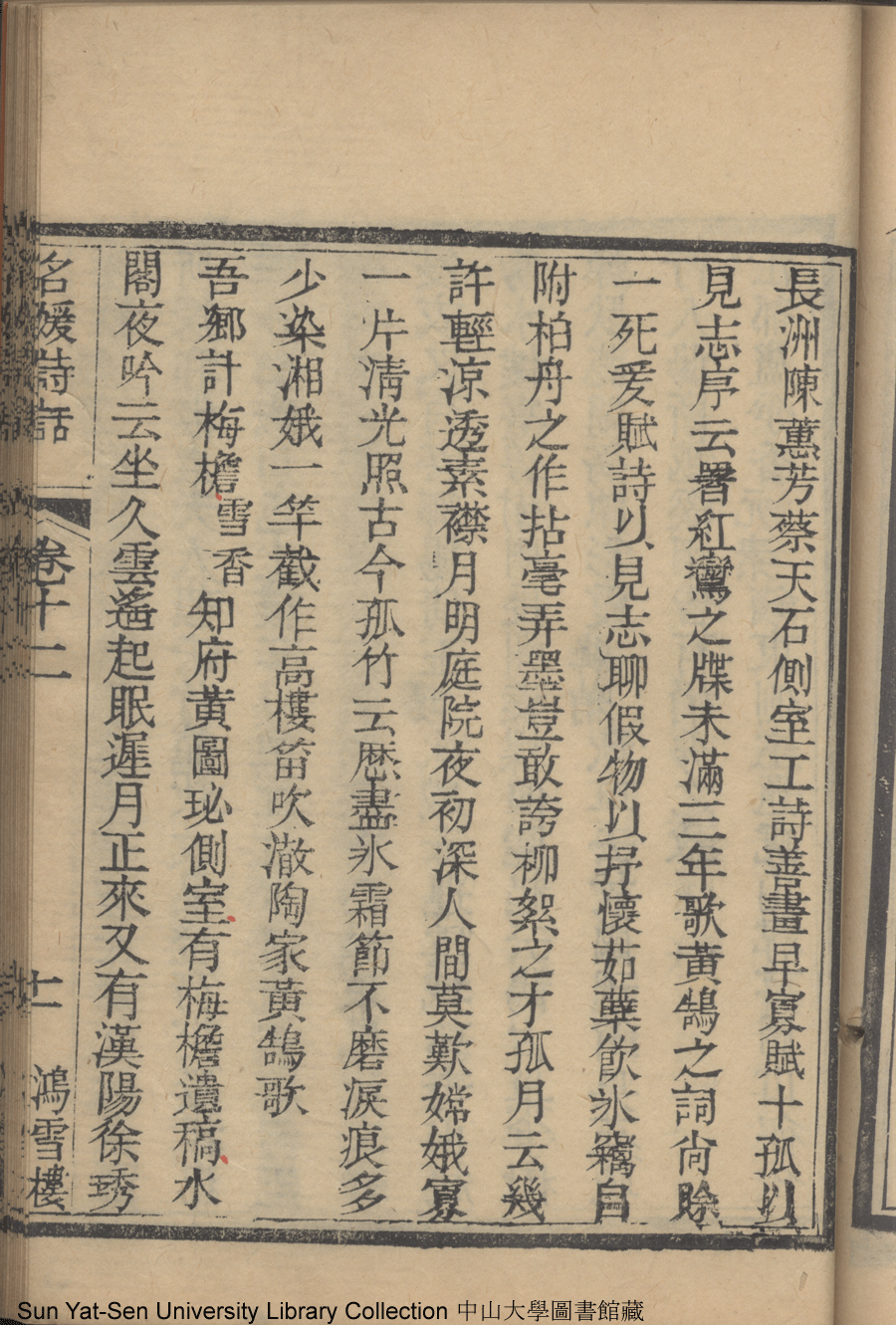 | (PRINT FRIENDLY VERSION) 名媛詩話十二卷續集三卷: 十五卷(清沈善寶撰)。清光緒五年(1879)鴻雪樓刻巾箱本 ![]() 頁碼 : 卷十二11b | 点 击 放 大 | 名媛詩話十二卷續集三卷: 十五卷(清沈善寶撰)。清光緒五年(1879)鴻雪樓刻巾箱本![]() 頁碼 : 卷十二11a | 点 击 放 大 | 返回 |