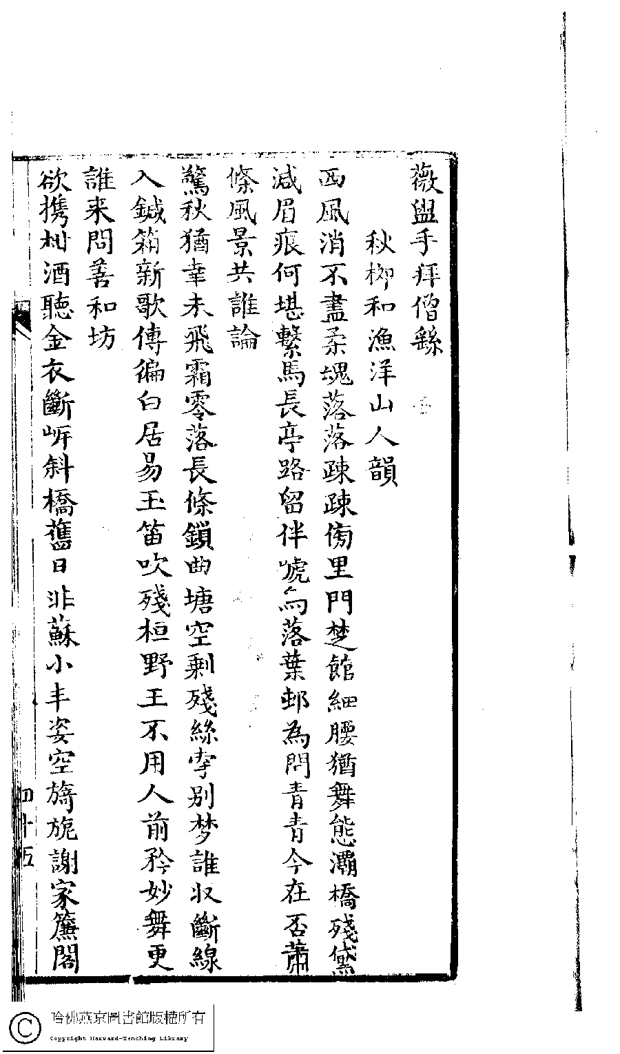 | (PRINT FRIENDLY VERSION) 泰州仲氏閨秀集合刻﹕七種(清仲蓮慶等撰) : 辟塵軒詩鈔﹕一卷。清嘉慶十二年(1807)刻本。 ![]() 頁碼 : 45b | 点 击 放 大 | 泰州仲氏閨秀集合刻﹕七種(清仲蓮慶等撰) : 辟塵軒詩鈔﹕一卷。清嘉慶十二年(1807)刻本。![]() 頁碼 : 45a | 点 击 放 大 | 返回 |