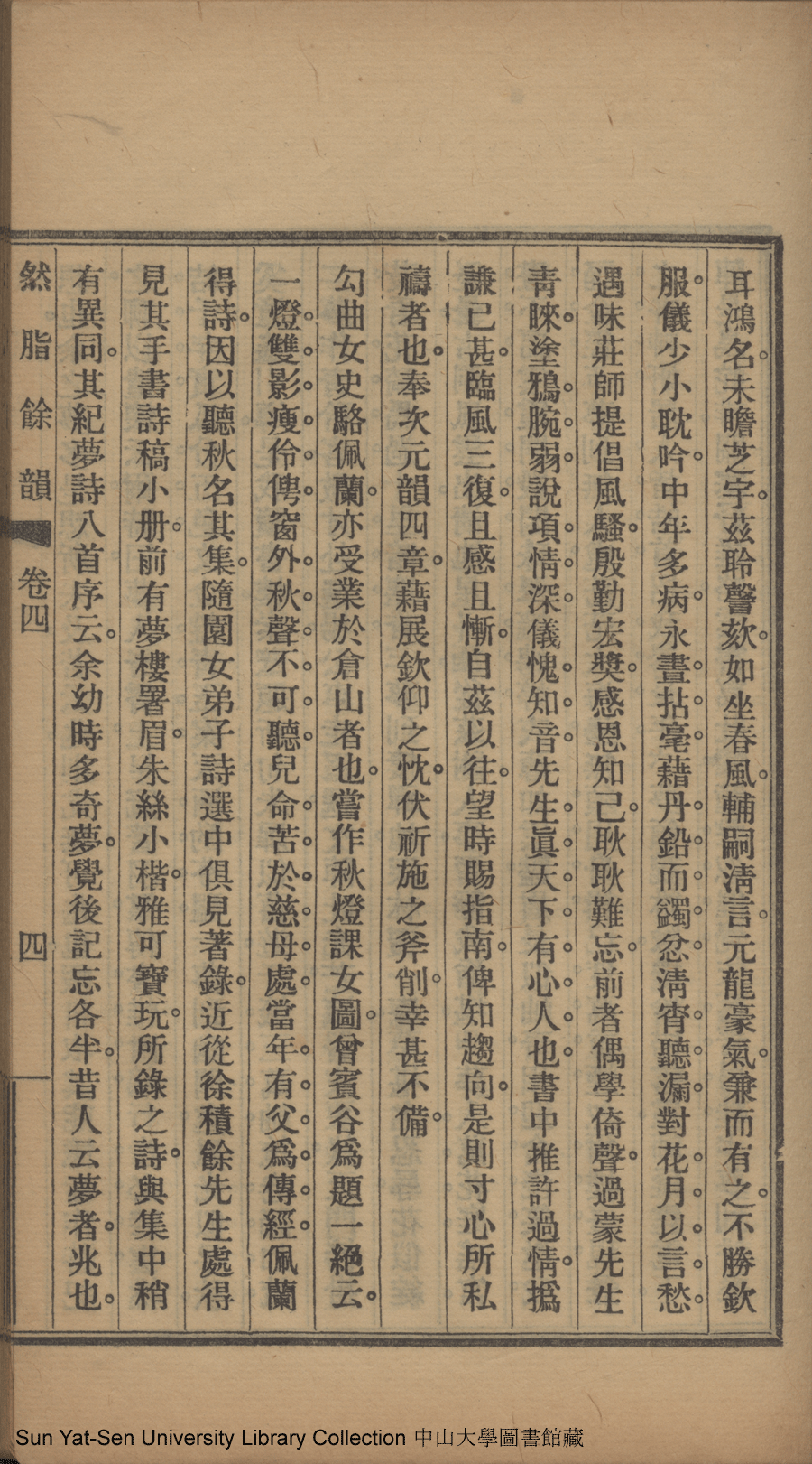 然脂餘韻: 六卷(清王蘊章撰)![]() 頁碼 : 卷四4a | 点 击 放 大 | 返回 |