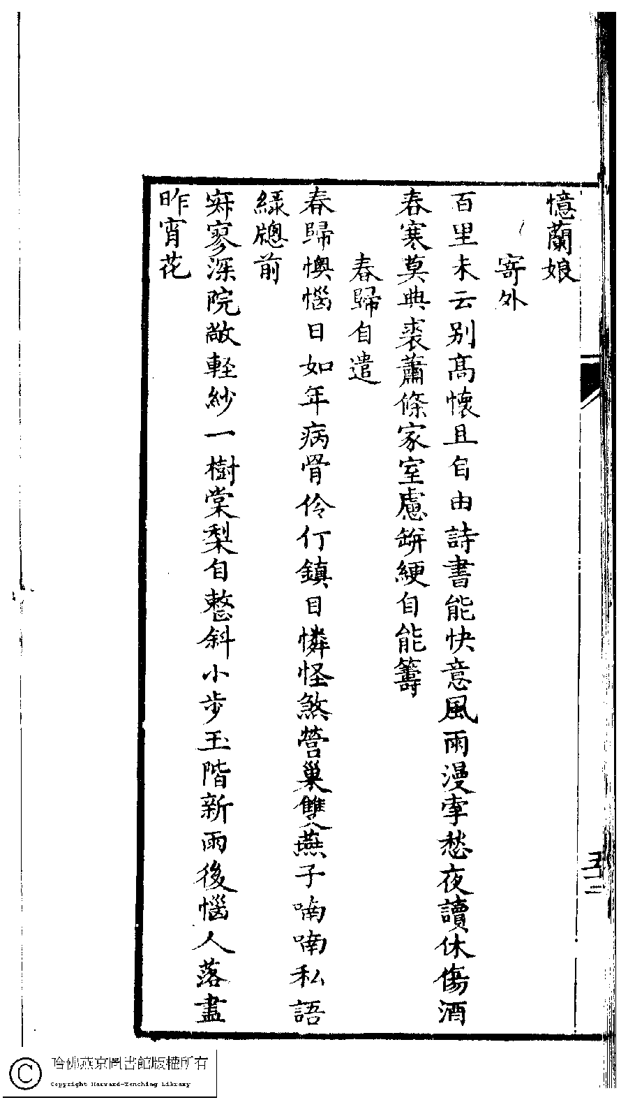 | (PRINT FRIENDLY VERSION) 泰州仲氏閨秀集合刻﹕七種(清仲蓮慶等撰) : 辟塵軒詩鈔﹕一卷。清嘉慶十二年(1807)刻本。 ![]() 頁碼 : 53a | 点 击 放 大 | 泰州仲氏閨秀集合刻﹕七種(清仲蓮慶等撰) : 辟塵軒詩鈔﹕一卷。清嘉慶十二年(1807)刻本。![]() 頁碼 : 52b | 点 击 放 大 | 返回 |