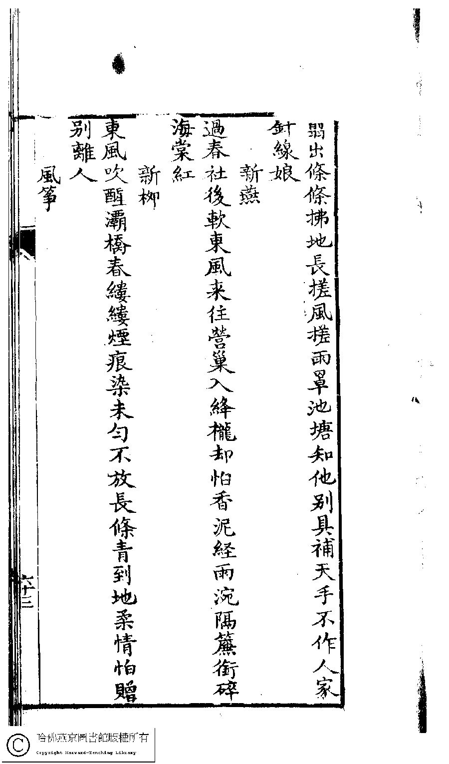 | (PRINT FRIENDLY VERSION) 泰州仲氏閨秀集合刻﹕七種(清仲蓮慶等撰) : 仲貽鑾遺詩。清嘉慶十二年(1807)刻本。 ![]() 頁碼 : 63b | 点 击 放 大 | 泰州仲氏閨秀集合刻﹕七種(清仲蓮慶等撰) : 仲貽鑾遺詩。清嘉慶十二年(1807)刻本。![]() 頁碼 : 63a | 点 击 放 大 | 返回 |