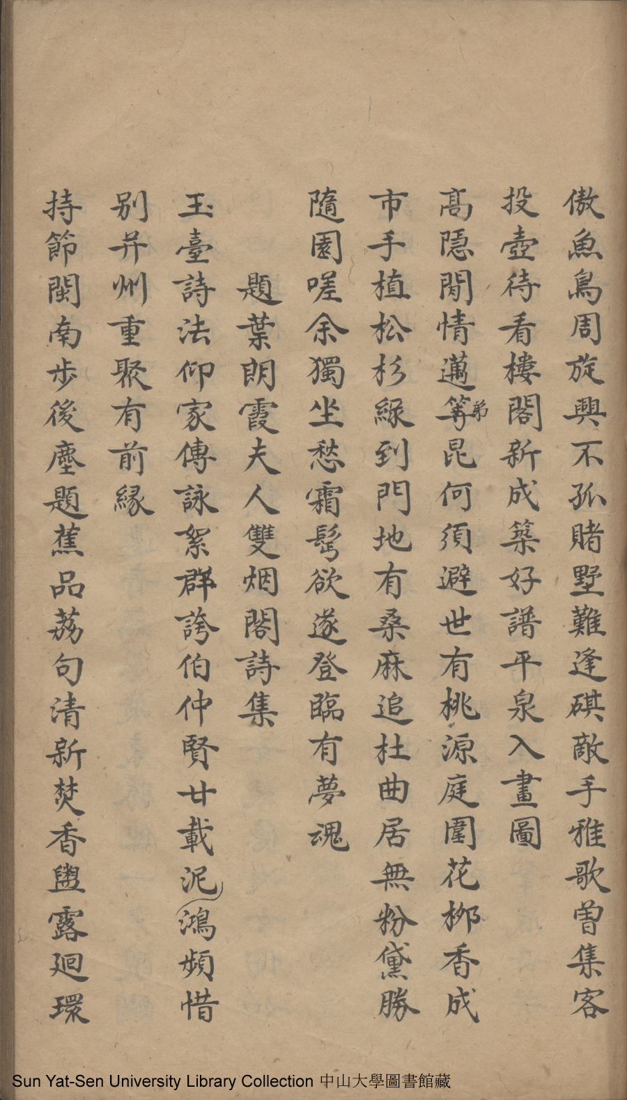 | (PRINT FRIENDLY VERSION) 不櫛吟續刻: 不分卷,不櫛吟未刻稿: 不分卷(清潘素心撰)。晚清(1843-1911)抄本 ![]() 頁碼 : 續刻20a | 点 击 放 大 | 不櫛吟續刻: 不分卷,不櫛吟未刻稿: 不分卷(清潘素心撰)。晚清(1843-1911)抄本![]() 頁碼 : 續刻19b | 点 击 放 大 | 返回 |
