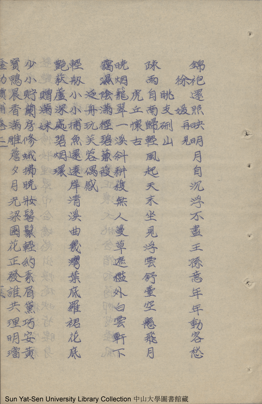 | (PRINT FRIENDLY VERSION) 奩詩泐補:二卷,奩泐續補:三卷(清范端昂輯)。1955年胡氏復寫本 ![]() 頁碼 : 續補卷二15a | 点 击 放 大 | 返回 |