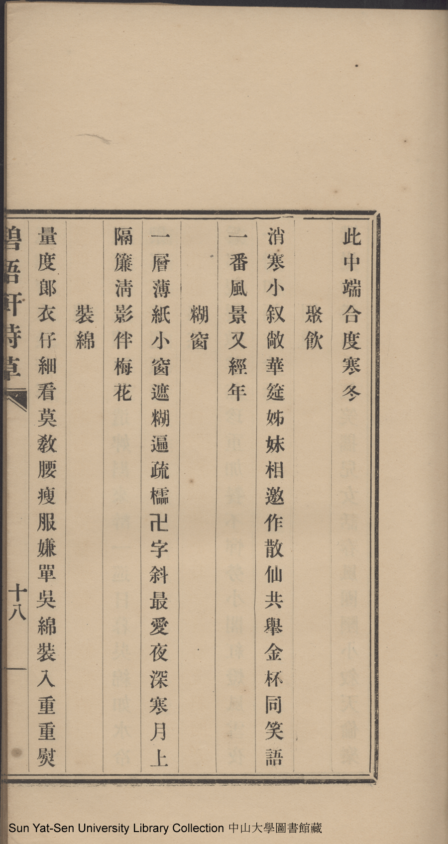 | (PRINT FRIENDLY VERSION) 碧梧軒詩草:一卷(清許桐撰)。民國二十六年(1927)鉛印本 ![]() 頁碼 : 詩草18b | 点 击 放 大 | 碧梧軒詩草:一卷(清許桐撰)。民國二十六年(1927)鉛印本![]() 頁碼 : 詩草18a | 点 击 放 大 | 返回 |