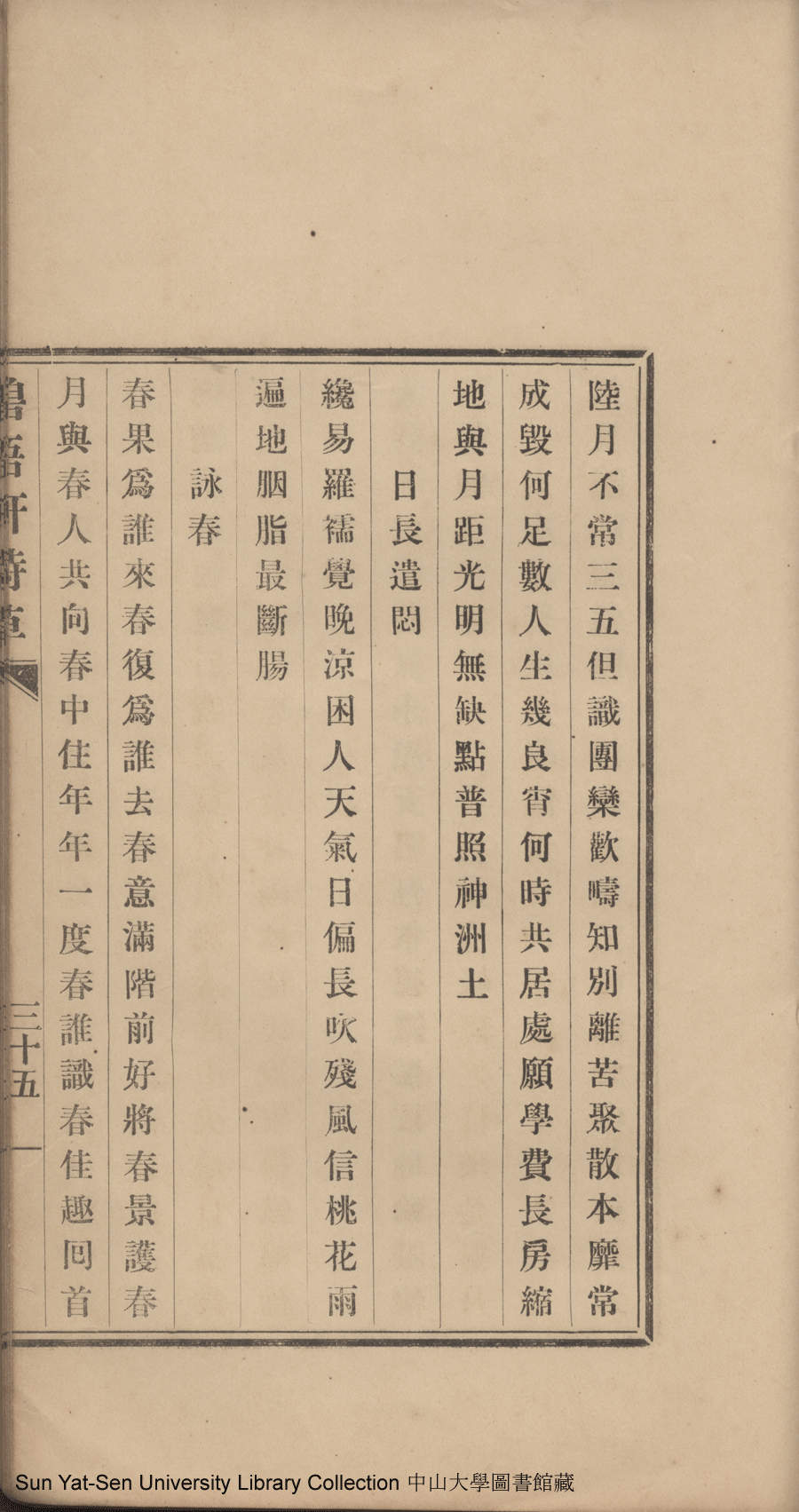 | (PRINT FRIENDLY VERSION) 碧梧軒詩草:一卷(清許桐撰)。民國二十六年(1927)鉛印本 ![]() 頁碼 : 詩草35a | 点 击 放 大 | 返回 |