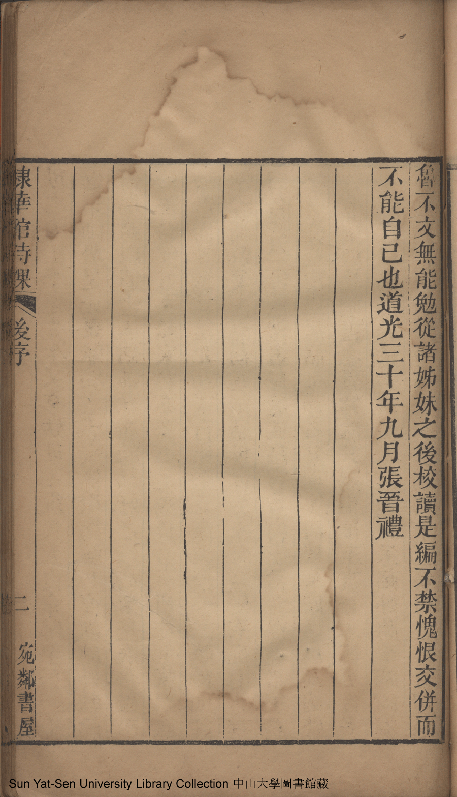 | (PRINT FRIENDLY VERSION) 棣華館詩課:十二卷(清張晉禮輯)。清道光三十年(1850)武昌官署棣華館刻本 ![]() 頁碼 : 張晉禮後序2b | 点 击 放 大 | 棣華館詩課:十二卷(清張晉禮輯)。清道光三十年(1850)武昌官署棣華館刻本![]() 頁碼 : 張晉禮後序2a | 点 击 放 大 | 棣華館詩課:十二卷(清張晉禮輯)。清道光三十年(1850)武昌官署棣華館刻本![]() 頁碼 : 張晉禮後序1b | 点 击 放 大 | 棣華館詩課:十二卷(清張晉禮輯)。清道光三十年(1850)武昌官署棣華館刻本![]() 頁碼 : 張晉禮後序1a | 点 击 放 大 | 返回 |