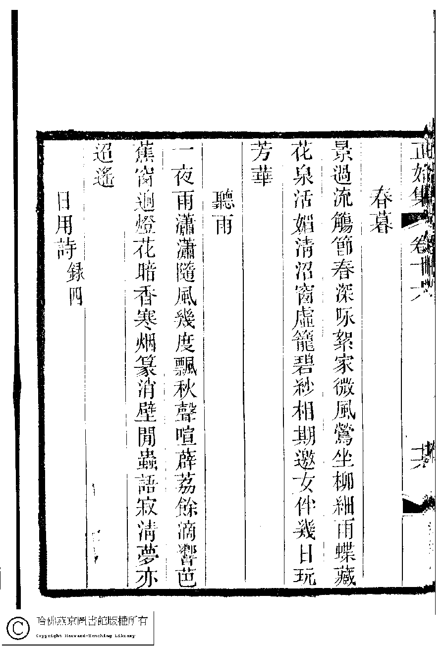 | 原書: 國朝閨秀正始集﹕二十卷﹐附錄﹕一卷﹐補遺﹕一卷﹐又附題詞﹕一卷(清惲珠輯) |