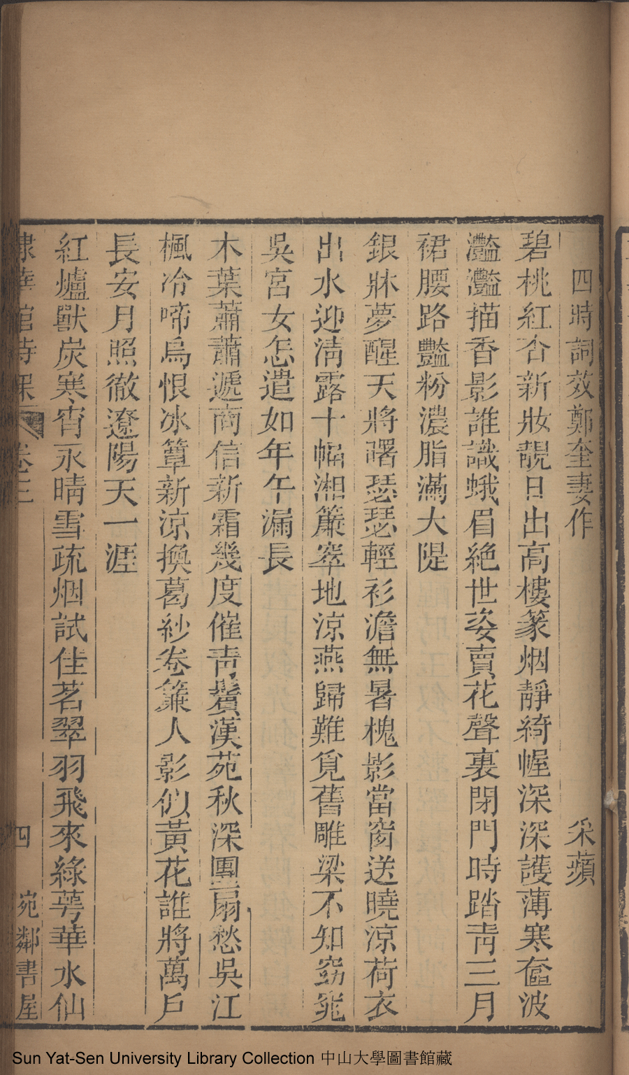| (PRINT FRIENDLY VERSION) 棣華館詩課:十二卷(清張晉禮輯)。清道光三十年(1850)武昌官署棣華館刻本 ![]() 頁碼 : 卷三4b | 点 击 放 大 | 棣華館詩課:十二卷(清張晉禮輯)。清道光三十年(1850)武昌官署棣華館刻本![]() 頁碼 : 卷三4a | 点 击 放 大 | 返回 |