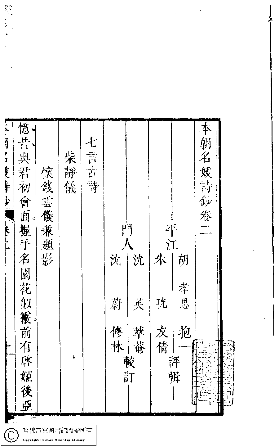 | 原書: 本朝名媛詩鈔﹕六卷(清胡孝思輯) |