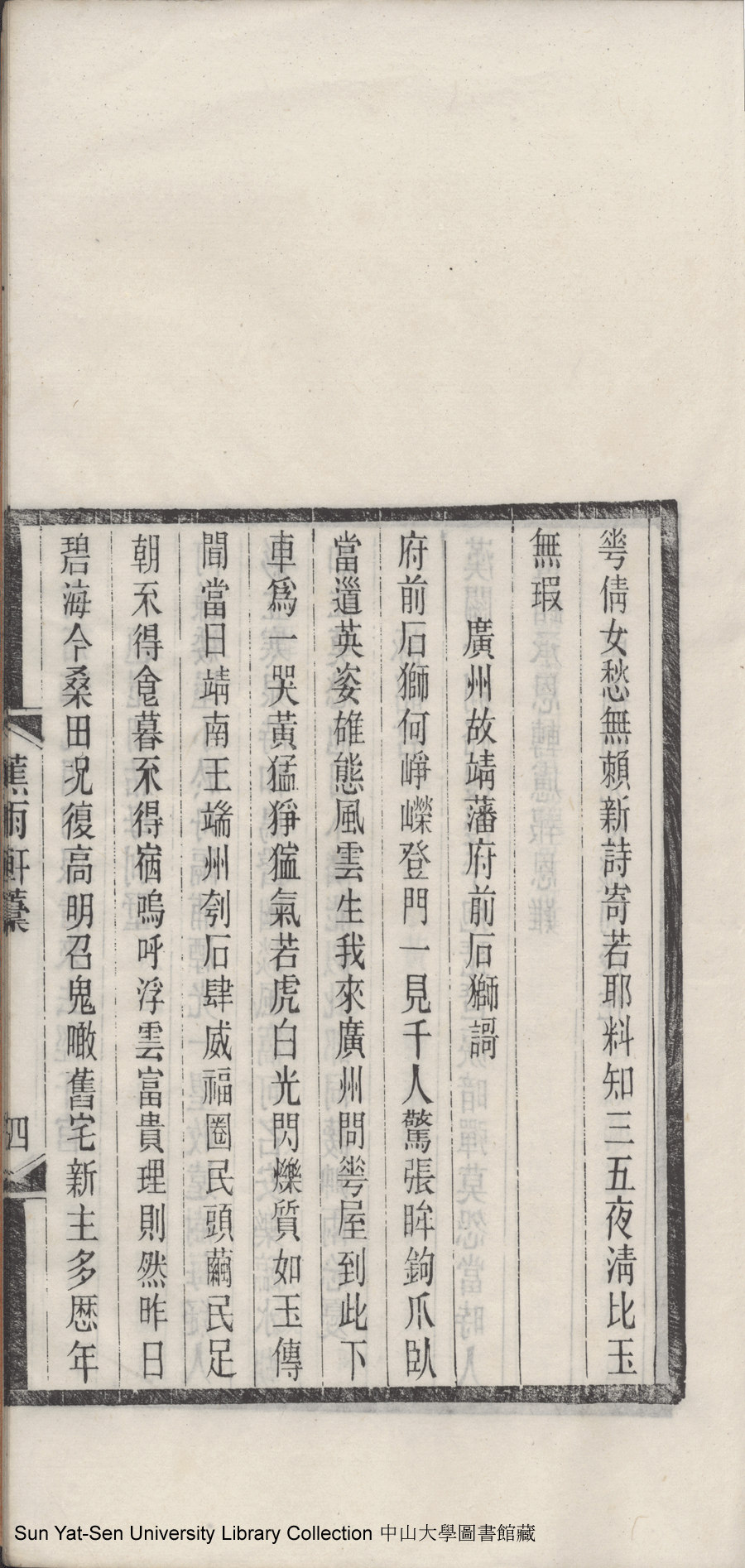 | (PRINT FRIENDLY VERSION) 蕉雨軒稿:一卷(清龍唫薌撰)。清光緒三十四年(1908)刻本 ![]() 頁碼 : 稿4a | 点 击 放 大 | 蕉雨軒稿:一卷(清龍唫薌撰)。清光緒三十四年(1908)刻本![]() 頁碼 : 稿3b | 点 击 放 大 | 返回 |