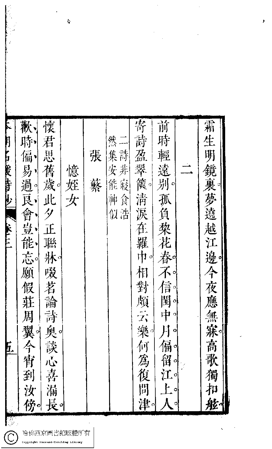 | (PRINT FRIENDLY VERSION) 本朝名媛詩鈔﹕六卷(清胡孝思輯)。清康熙五十五年(1716)凌雲閣刻本 ![]() 頁碼 : 3.5a | 点 击 放 大 | 本朝名媛詩鈔﹕六卷(清胡孝思輯)。清康熙五十五年(1716)凌雲閣刻本![]() 頁碼 : 3.4b | 点 击 放 大 | 返回 |
