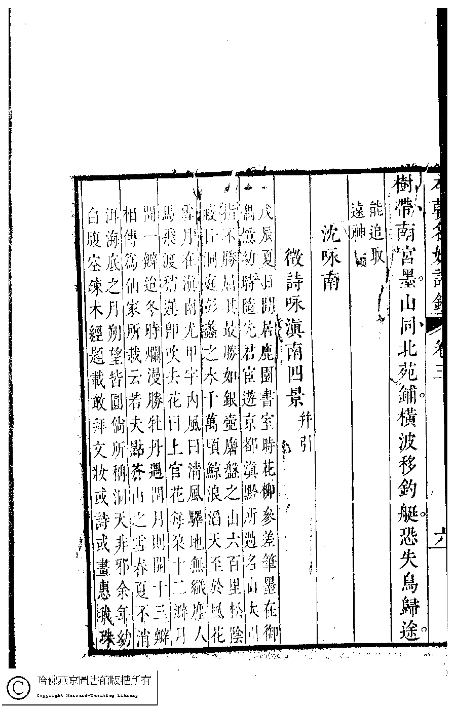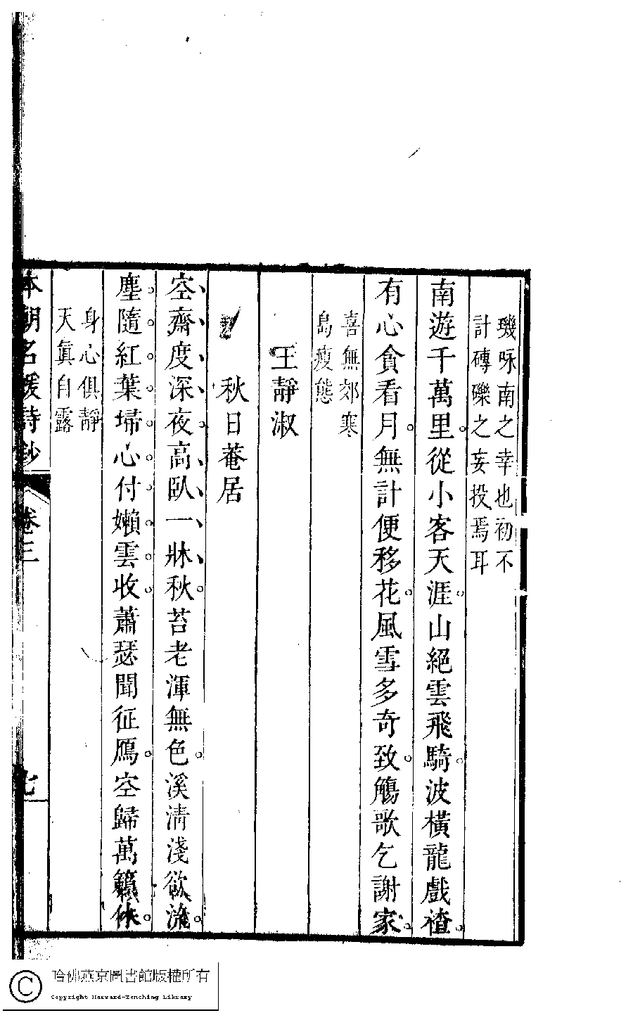 | (PRINT FRIENDLY VERSION) 本朝名媛詩鈔﹕六卷(清胡孝思輯)。清康熙五十五年(1716)凌雲閣刻本 ![]() 頁碼 : 3.7a | 点 击 放 大 | 本朝名媛詩鈔﹕六卷(清胡孝思輯)。清康熙五十五年(1716)凌雲閣刻本![]() 頁碼 : 3.6b | 点 击 放 大 | 返回 |