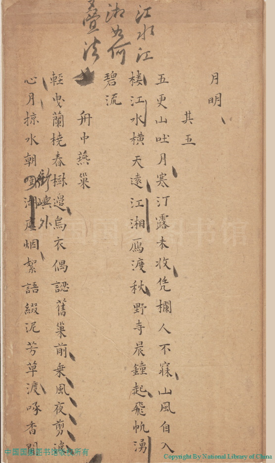 詩詞 [(擬蘇子瞻五更山吐月仍以殘夜水明樓為韻)其五]