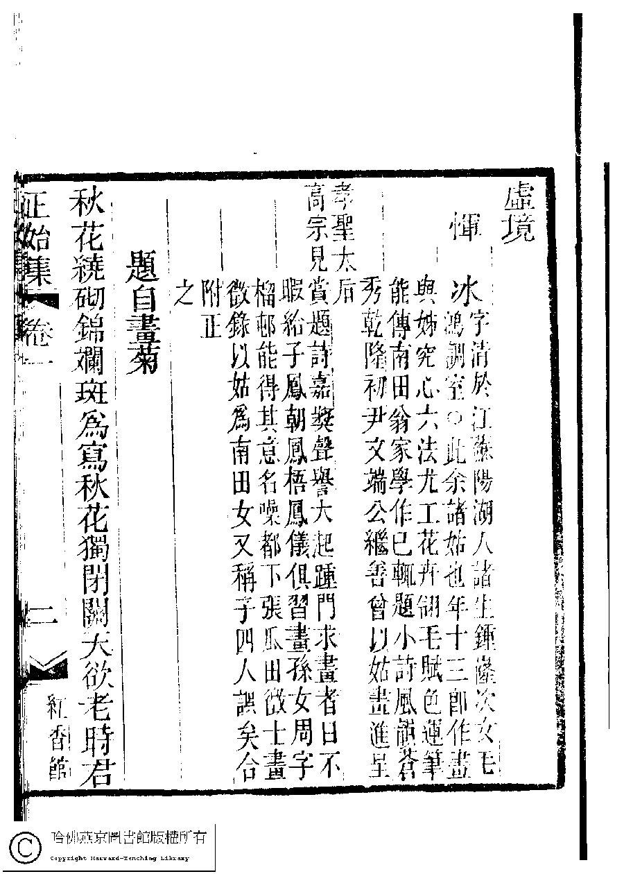 | 原書: 國朝閨秀正始集﹕二十卷﹐附錄﹕一卷﹐補遺﹕一卷﹐又附題詞﹕一卷(清惲珠輯) |