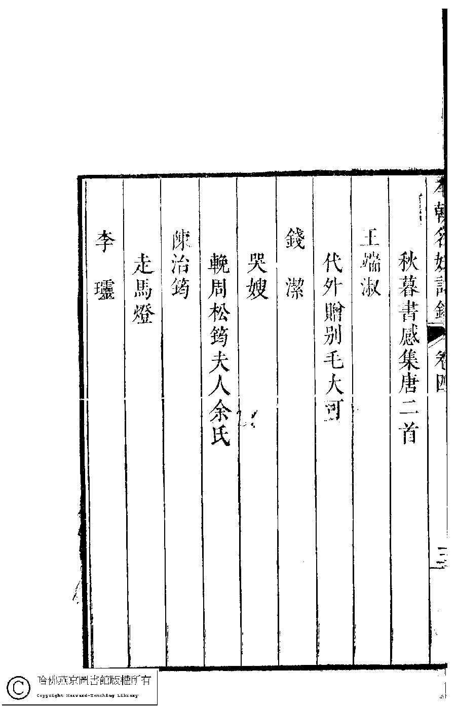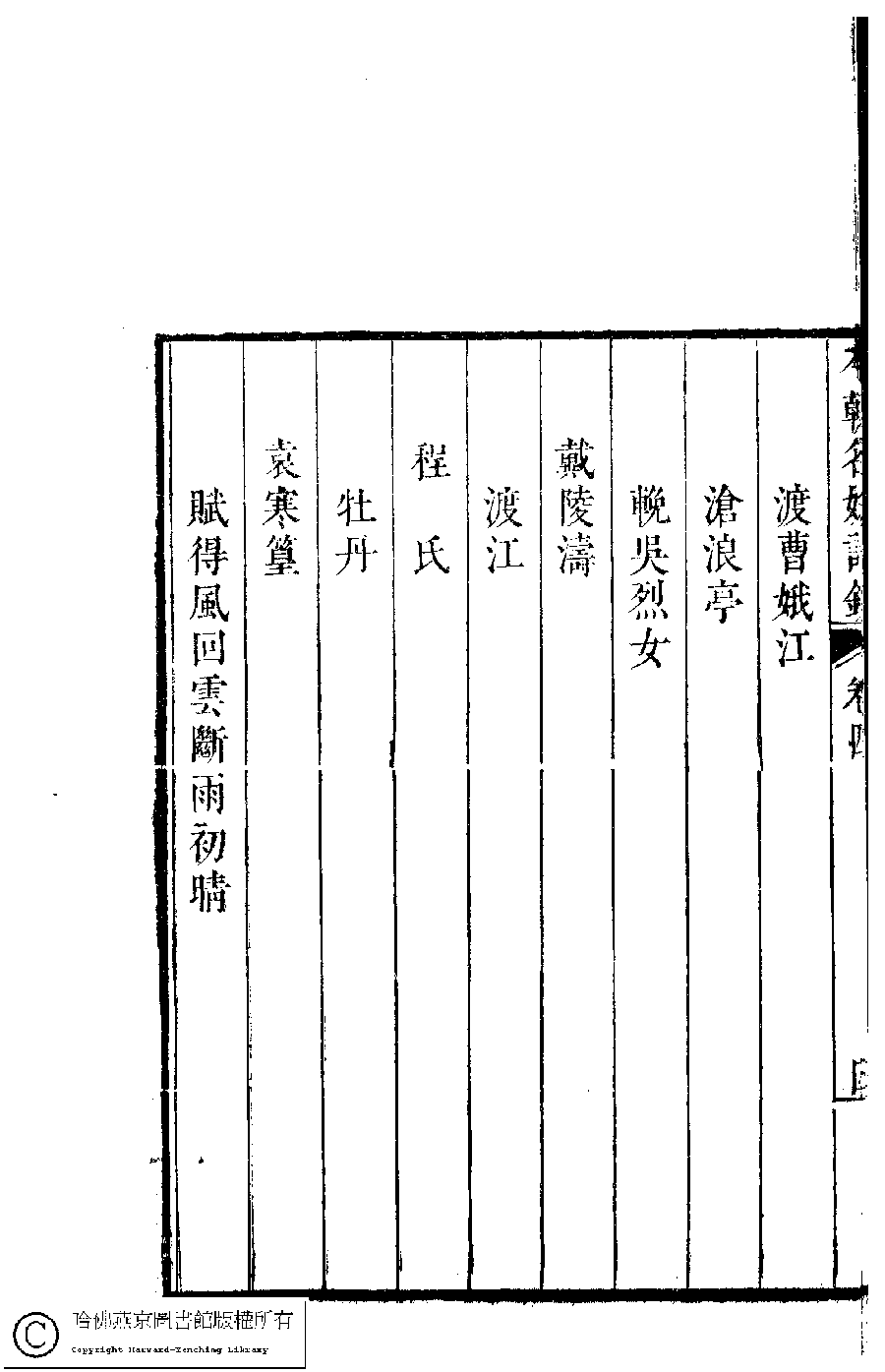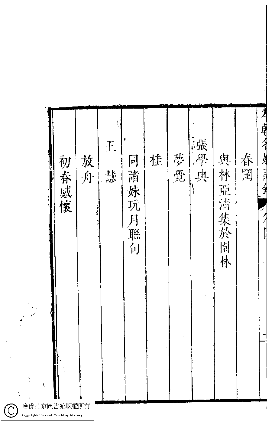 | 原書: 本朝名媛詩鈔﹕六卷(清胡孝思輯) |