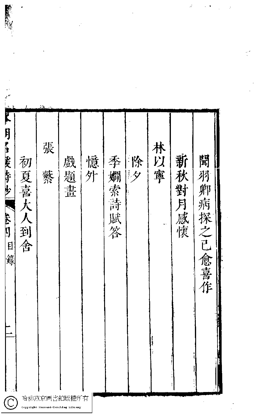 本朝名媛詩鈔﹕六卷(清胡孝思輯)![]() 頁碼 : 4.目錄.4b | 点 击 放 大 | 本朝名媛詩鈔﹕六卷(清胡孝思輯)![]() 頁碼 : 4.目錄.4a | 点 击 放 大 | 本朝名媛詩鈔﹕六卷(清胡孝思輯)![]() 頁碼 : 4.目錄.3b | 点 击 放 大 | 本朝名媛詩鈔﹕六卷(清胡孝思輯)![]() 頁碼 : 4.目錄.3a | 点 击 放 大 | 第 1 頁 2 | 返回 | << | < | > | >> |