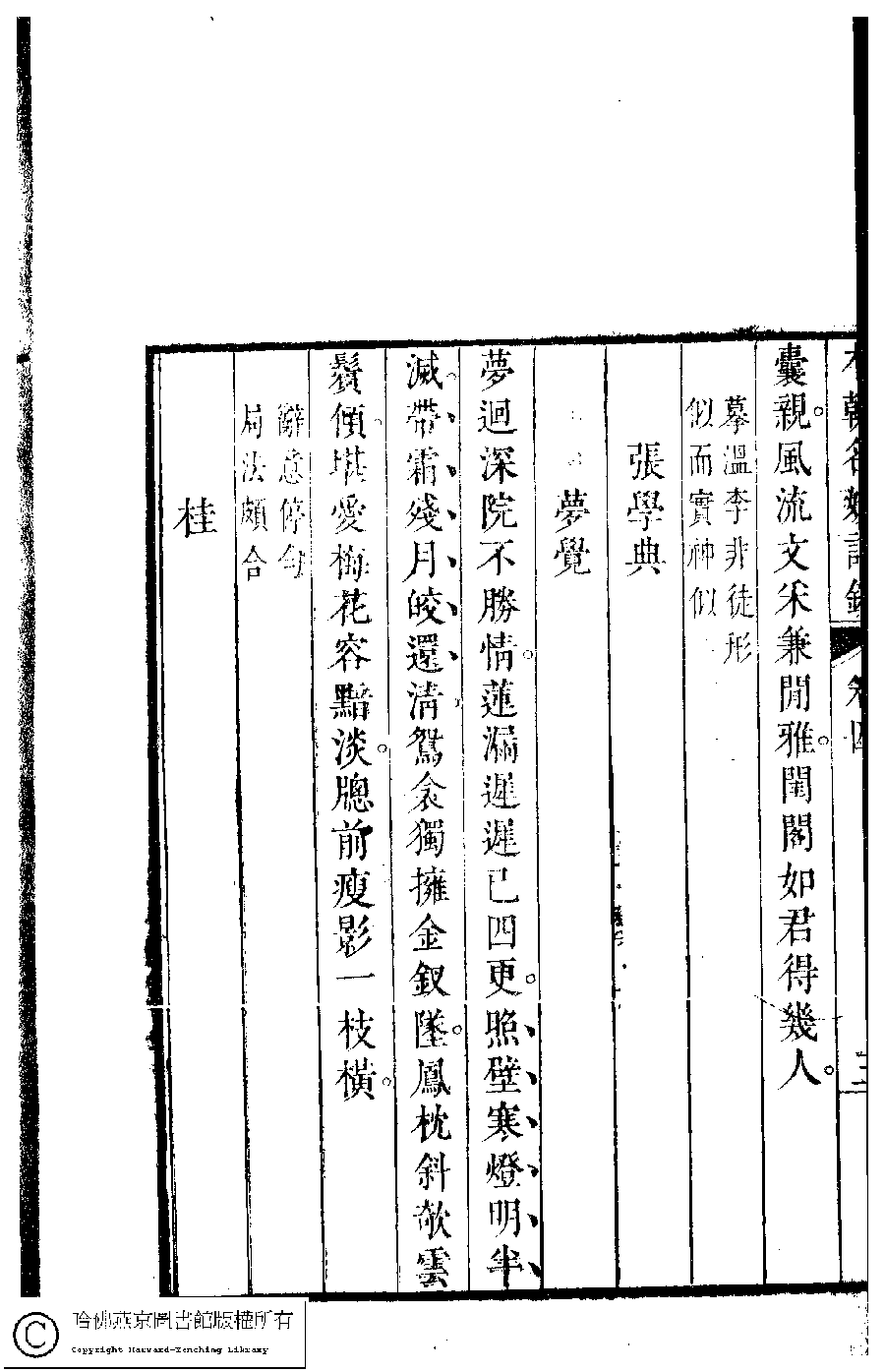 | (PRINT FRIENDLY VERSION) 本朝名媛詩鈔﹕六卷(清胡孝思輯)。清康熙五十五年(1716)凌雲閣刻本 ![]() 頁碼 : 4.4a | 点 击 放 大 | 本朝名媛詩鈔﹕六卷(清胡孝思輯)。清康熙五十五年(1716)凌雲閣刻本![]() 頁碼 : 4.3b | 点 击 放 大 | 返回 |