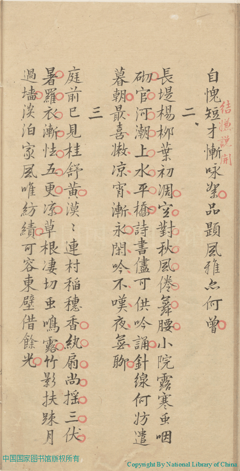 | (PRINT FRIENDLY VERSION) 紉餘漫草:一卷(清王慧增撰)。清乾隆間(1740-1750)抄本 ![]() 頁碼 : 詩.6b | 点 击 放 大 | 返回 |