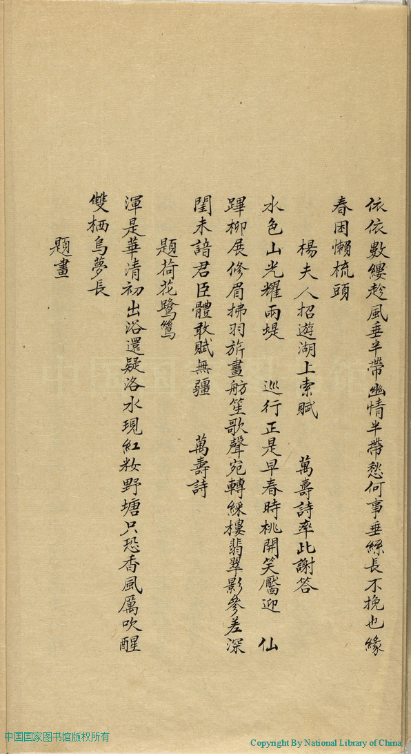 詩詞 [楊夫人招遊湖上索賦萬壽詩率此謝答]