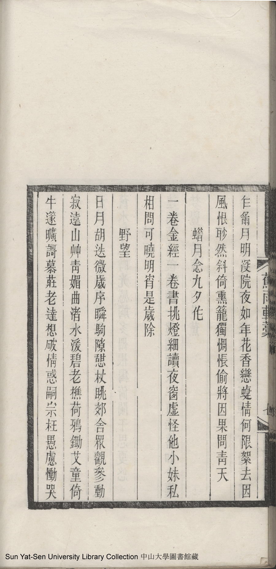 | (PRINT FRIENDLY VERSION) 蕉雨軒稿:一卷(清龍唫薌撰)。清光緒三十四年(1908)刻本 ![]() 頁碼 : 稿8a | 点 击 放 大 | 蕉雨軒稿:一卷(清龍唫薌撰)。清光緒三十四年(1908)刻本![]() 頁碼 : 稿7b | 点 击 放 大 | 返回 |