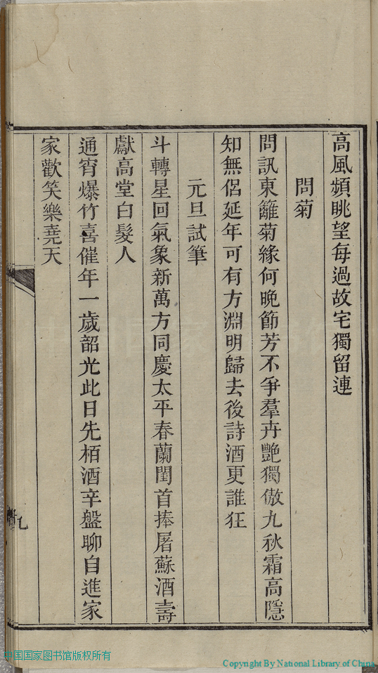 | (PRINT FRIENDLY VERSION) 茗香室詩略:一卷(清李如蕙撰)。道光十五年乙未(1835)刊本 ![]() 頁碼 : 詩略.9a | 点 击 放 大 | 返回 |