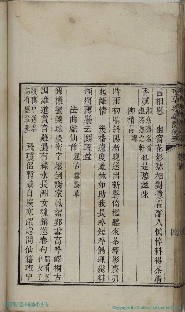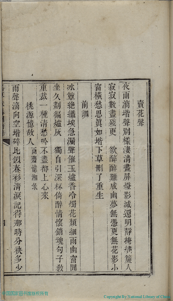 | (PRINT FRIENDLY VERSION) 鏤冰詞:一卷(清席慧文撰)。 ![]() 頁碼 : 鏤冰詞.4b | 点 击 放 大 | 鏤冰詞:一卷(清席慧文撰)。![]() 頁碼 : 鏤冰詞.4a | 点 击 放 大 | 返回 |