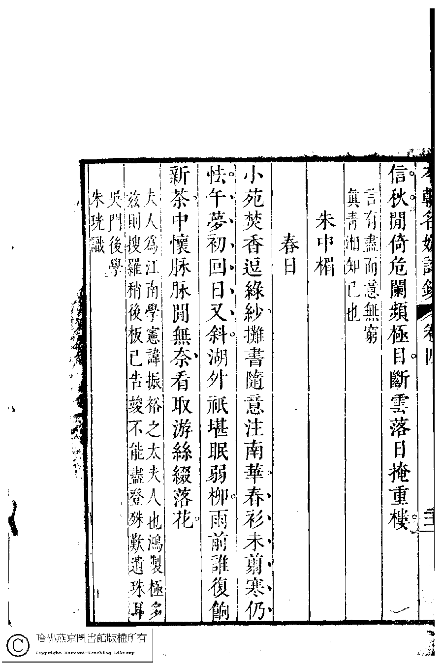 | 原書: 本朝名媛詩鈔﹕六卷(清胡孝思輯) |