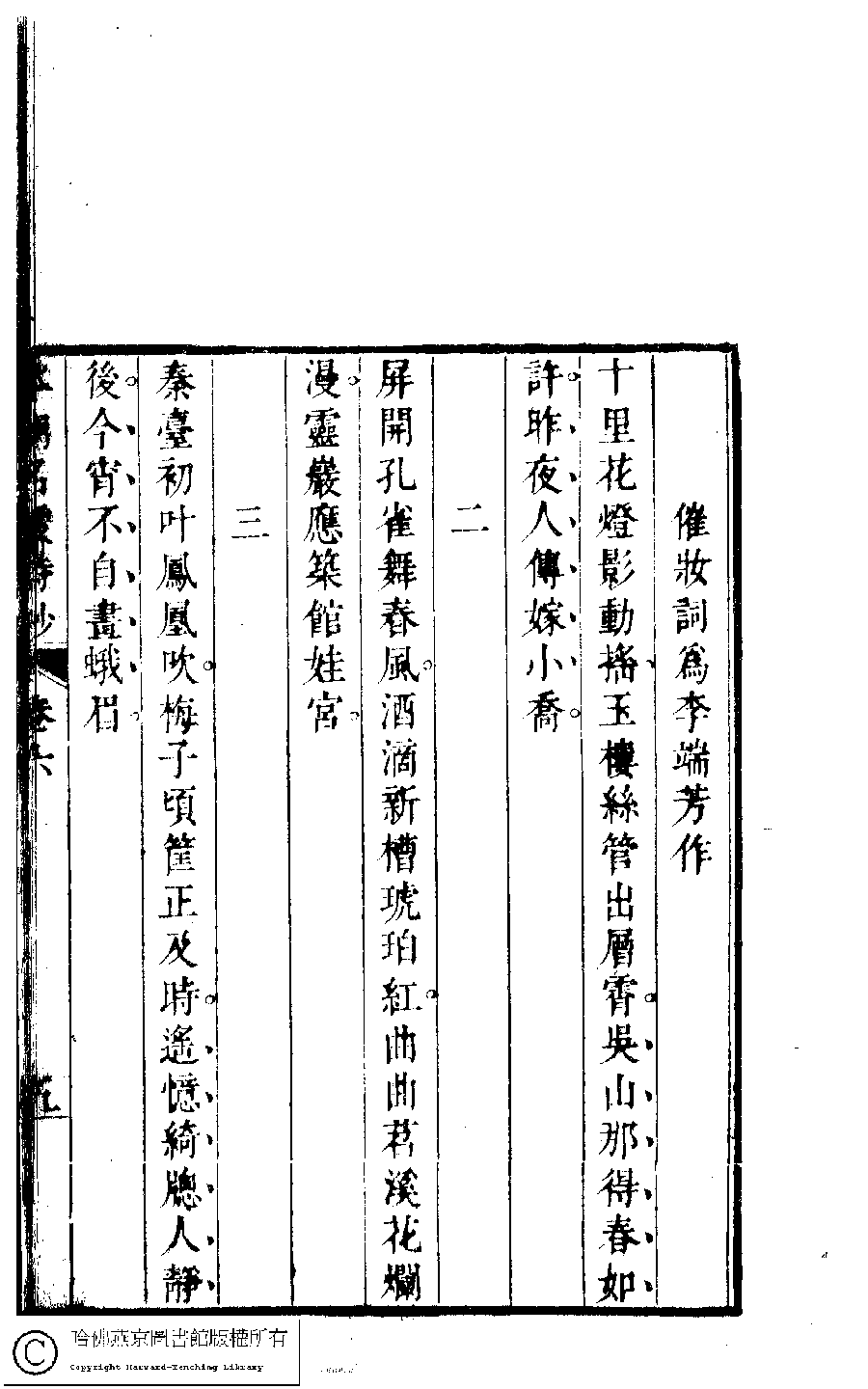 | (PRINT FRIENDLY VERSION) 本朝名媛詩鈔﹕六卷(清胡孝思輯)。清康熙五十五年(1716)凌雲閣刻本 ![]() 頁碼 : 6.5b | 点 击 放 大 | 本朝名媛詩鈔﹕六卷(清胡孝思輯)。清康熙五十五年(1716)凌雲閣刻本![]() 頁碼 : 6.5a | 点 击 放 大 | 返回 |