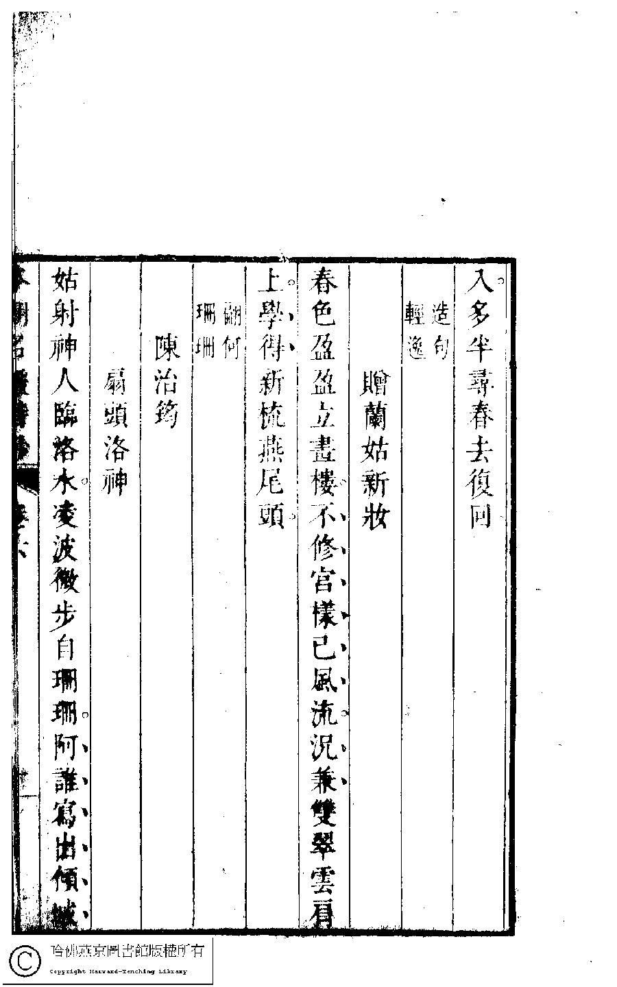 | (PRINT FRIENDLY VERSION) 本朝名媛詩鈔﹕六卷(清胡孝思輯)。清康熙五十五年(1716)凌雲閣刻本 ![]() 頁碼 : 6.10b | 点 击 放 大 | 本朝名媛詩鈔﹕六卷(清胡孝思輯)。清康熙五十五年(1716)凌雲閣刻本![]() 頁碼 : 6.10a | 点 击 放 大 | 返回 |