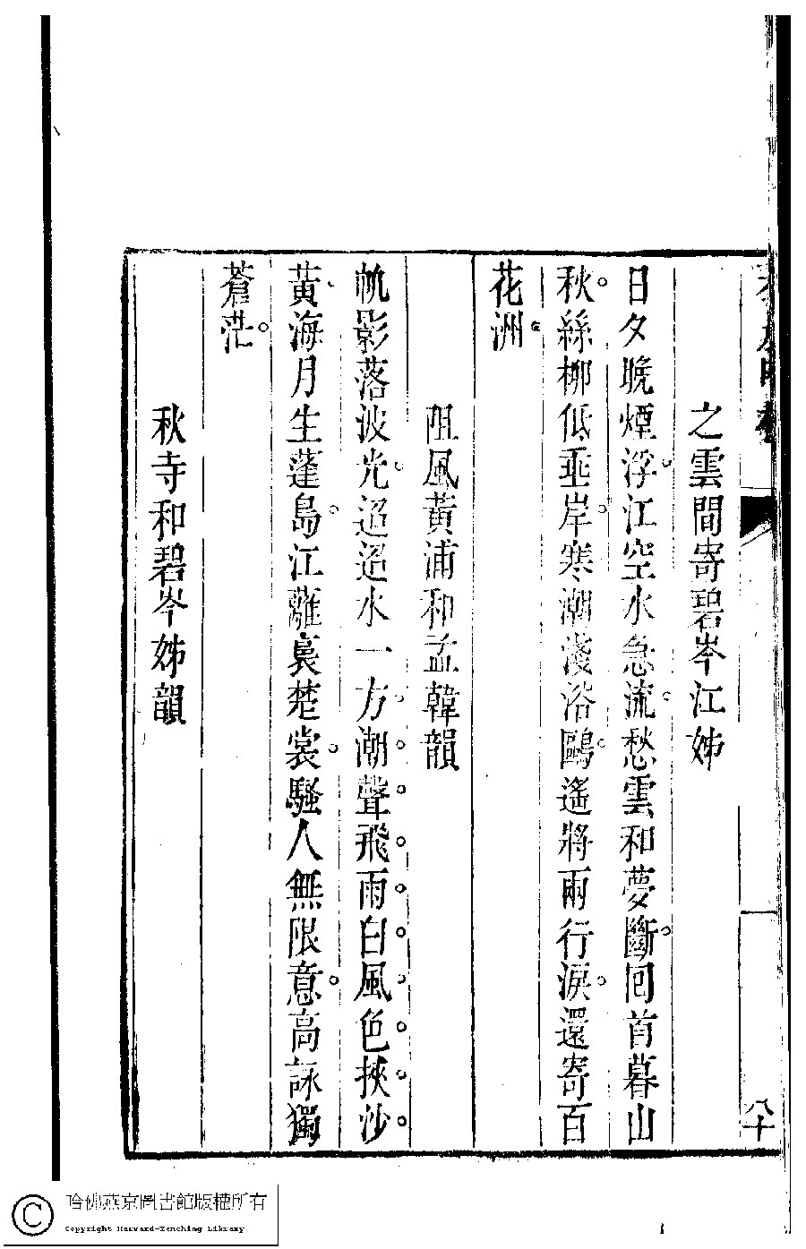 | (PRINT FRIENDLY VERSION) 吳中女士詩鈔(清任兆麟輯,張滋蘭選) : 翡翠樓集﹕一卷﹐浣紗詞﹕一卷。清乾隆五十四年(1789)刻本 ![]() 頁碼 : 翡翠樓.7b | 点 击 放 大 | 返回 |