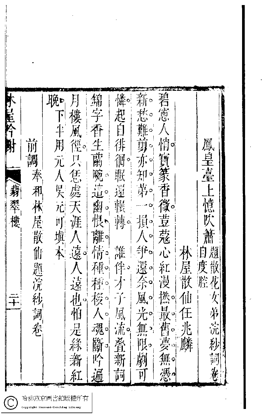 | 原書: 吳中女士詩鈔(清任兆麟輯,張滋蘭選): 翡翠樓集﹕一卷﹐浣紗詞﹕一卷 |
