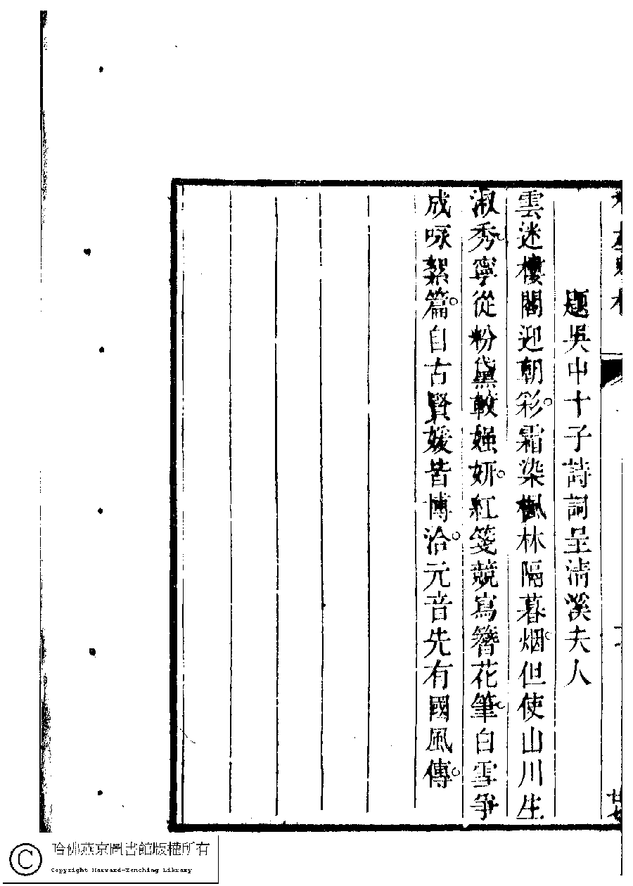| 原書: 吳中女士詩鈔(清任兆麟輯,張滋蘭選): 清溪詩稿﹕一卷 |
