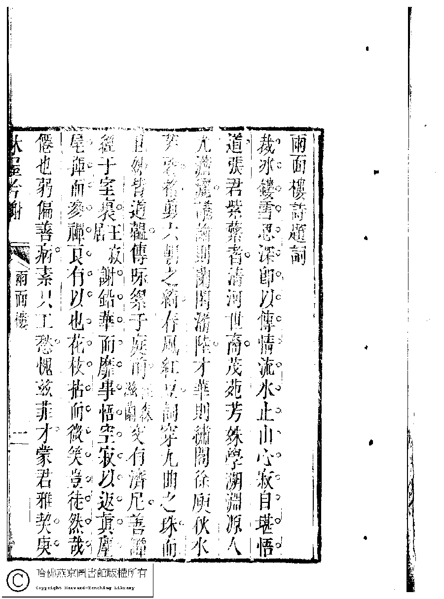 | 原書: 吳中女士詩鈔(清任兆麟輯,張滋蘭選): 兩面樓詩稿﹕一卷 |