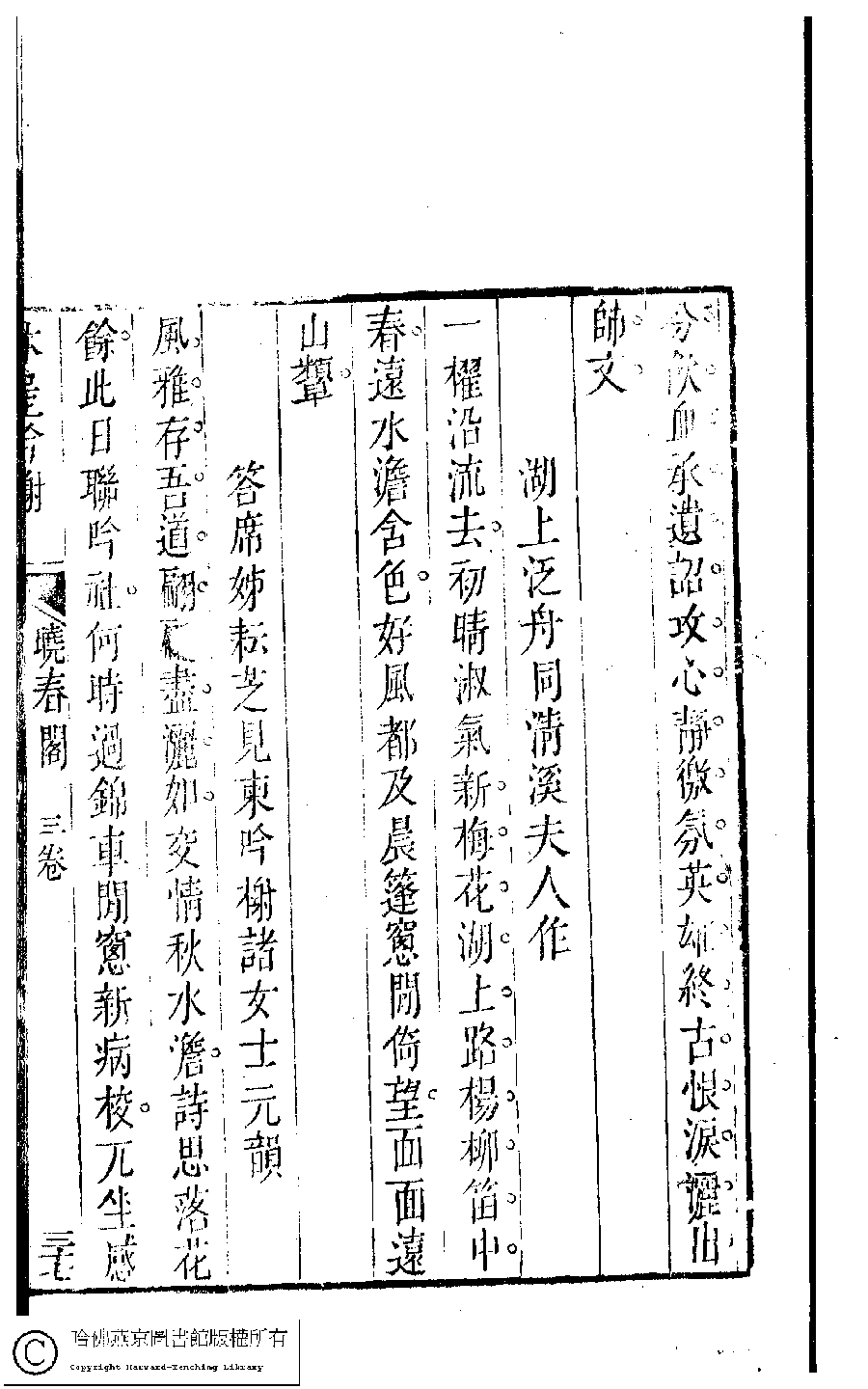 | 原書: 吳中女士詩鈔(清任兆麟輯,張滋蘭選): 曉春閣詩稿﹕一卷 |