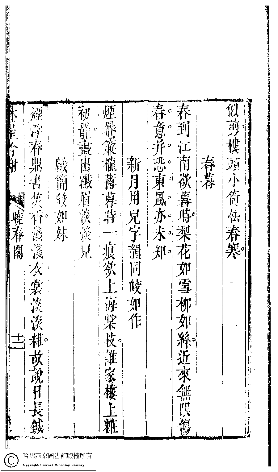 | 原書: 吳中女士詩鈔(清任兆麟輯,張滋蘭選): 曉春閣詩稿﹕一卷 |