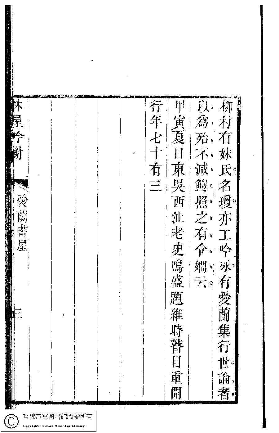 | (PRINT FRIENDLY VERSION) 吳中女士詩鈔(清任兆麟輯,張滋蘭選) : 愛蘭詩鈔﹕一卷。清乾隆五十四年(1789)刻本 ![]() 頁碼 : 愛蘭書屋.3b | 点 击 放 大 | 吳中女士詩鈔(清任兆麟輯,張滋蘭選) : 愛蘭詩鈔﹕一卷。清乾隆五十四年(1789)刻本![]() 頁碼 : 愛蘭書屋.3a | 点 击 放 大 | 吳中女士詩鈔(清任兆麟輯,張滋蘭選) : 愛蘭詩鈔﹕一卷。清乾隆五十四年(1789)刻本![]() 頁碼 : 愛蘭書屋.2b | 点 击 放 大 | 吳中女士詩鈔(清任兆麟輯,張滋蘭選) : 愛蘭詩鈔﹕一卷。清乾隆五十四年(1789)刻本![]() 頁碼 : 愛蘭書屋.2a | 点 击 放 大 | 返回 |