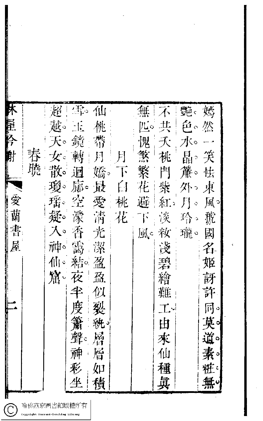 | 原書: 吳中女士詩鈔(清任兆麟輯,張滋蘭選): 愛蘭詩鈔﹕一卷 |