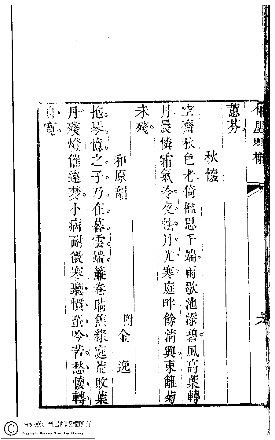 | 原書: 吳中女士詩鈔(清任兆麟輯,張滋蘭選): 愛蘭詩鈔﹕一卷 |
