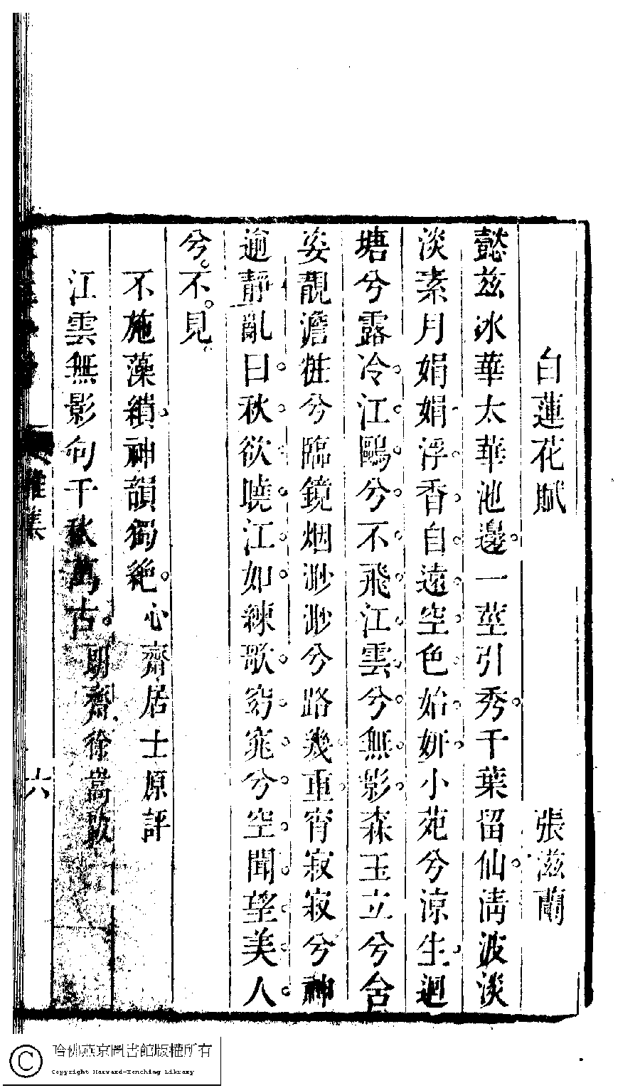 | (PRINT FRIENDLY VERSION) 吳中女士詩鈔(清任兆麟輯,張滋蘭選) : 翡翠林雅集﹕一卷。清乾隆五十四年(1789)刻本 ![]() 頁碼 : 雅集.6b | 点 击 放 大 | 吳中女士詩鈔(清任兆麟輯,張滋蘭選) : 翡翠林雅集﹕一卷。清乾隆五十四年(1789)刻本![]() 頁碼 : 雅集.6a | 点 击 放 大 | 返回 |