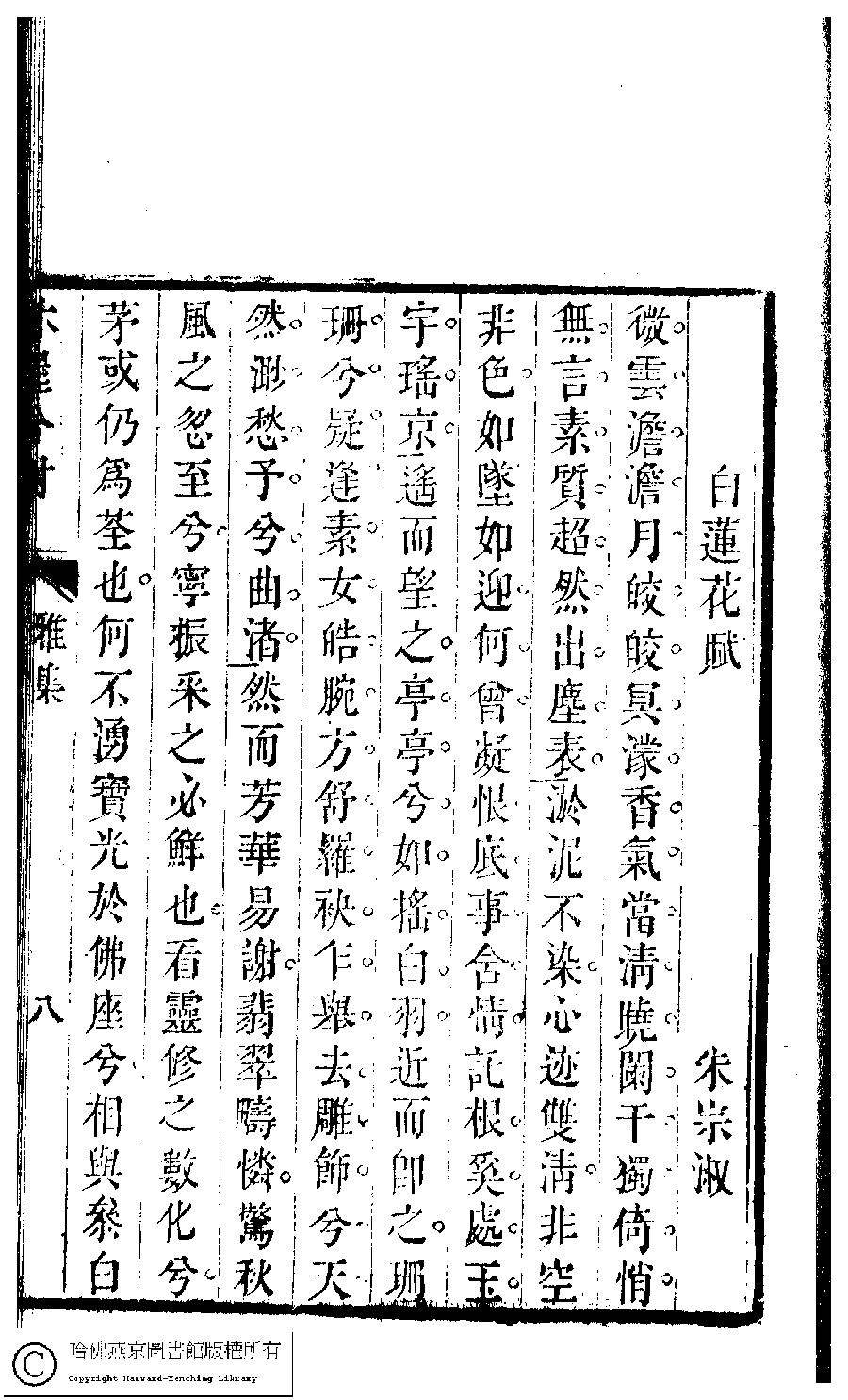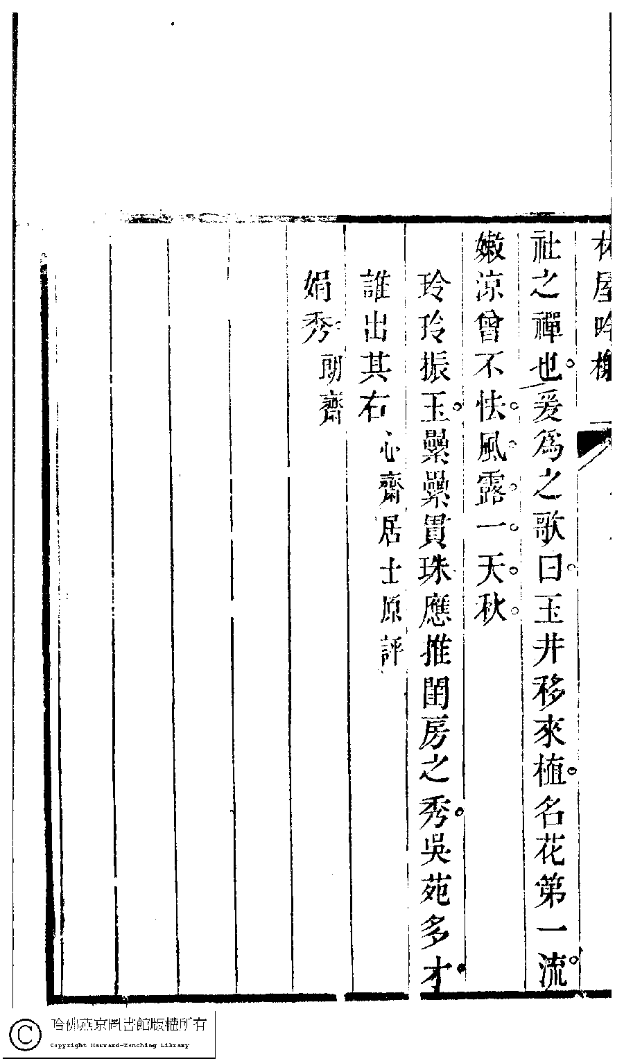 | (PRINT FRIENDLY VERSION) 吳中女士詩鈔(清任兆麟輯,張滋蘭選) : 翡翠林雅集﹕一卷。清乾隆五十四年(1789)刻本 ![]() 頁碼 : 雅集.8b | 点 击 放 大 | 吳中女士詩鈔(清任兆麟輯,張滋蘭選) : 翡翠林雅集﹕一卷。清乾隆五十四年(1789)刻本![]() 頁碼 : 雅集.8a | 点 击 放 大 | 返回 |